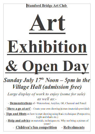 Sunday July 17th Noon – 5pm in the Village Hall (admission free)